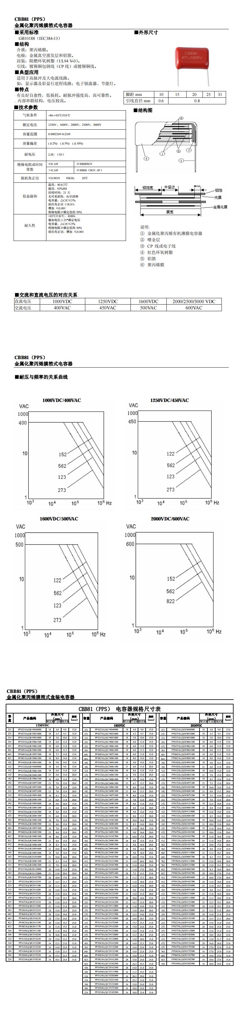 ◆CBB81高压金属化聚丙烯薄膜电容