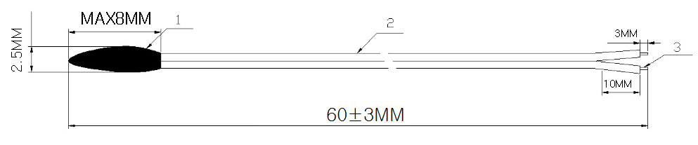 MF52D小皮线NTC热敏电阻尺寸图(mm)